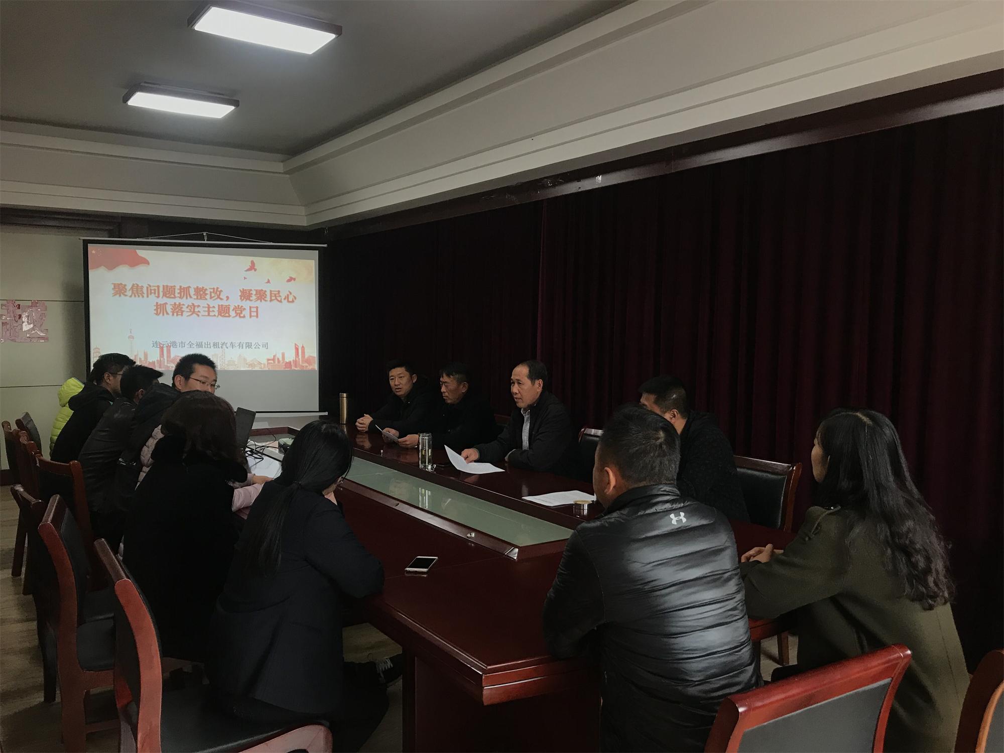 根據(jù)市委“不忘初心、牢記使命”主題教育領(lǐng)導(dǎo)小組辦公室及汽服黨委統(tǒng)一部署,11月25日上午,全福公司黨支部在公司三樓會議室開展不忘初心、牢記使命“聚焦問題抓整改,凝聚民心抓落實(shí)”主題黨日活動。