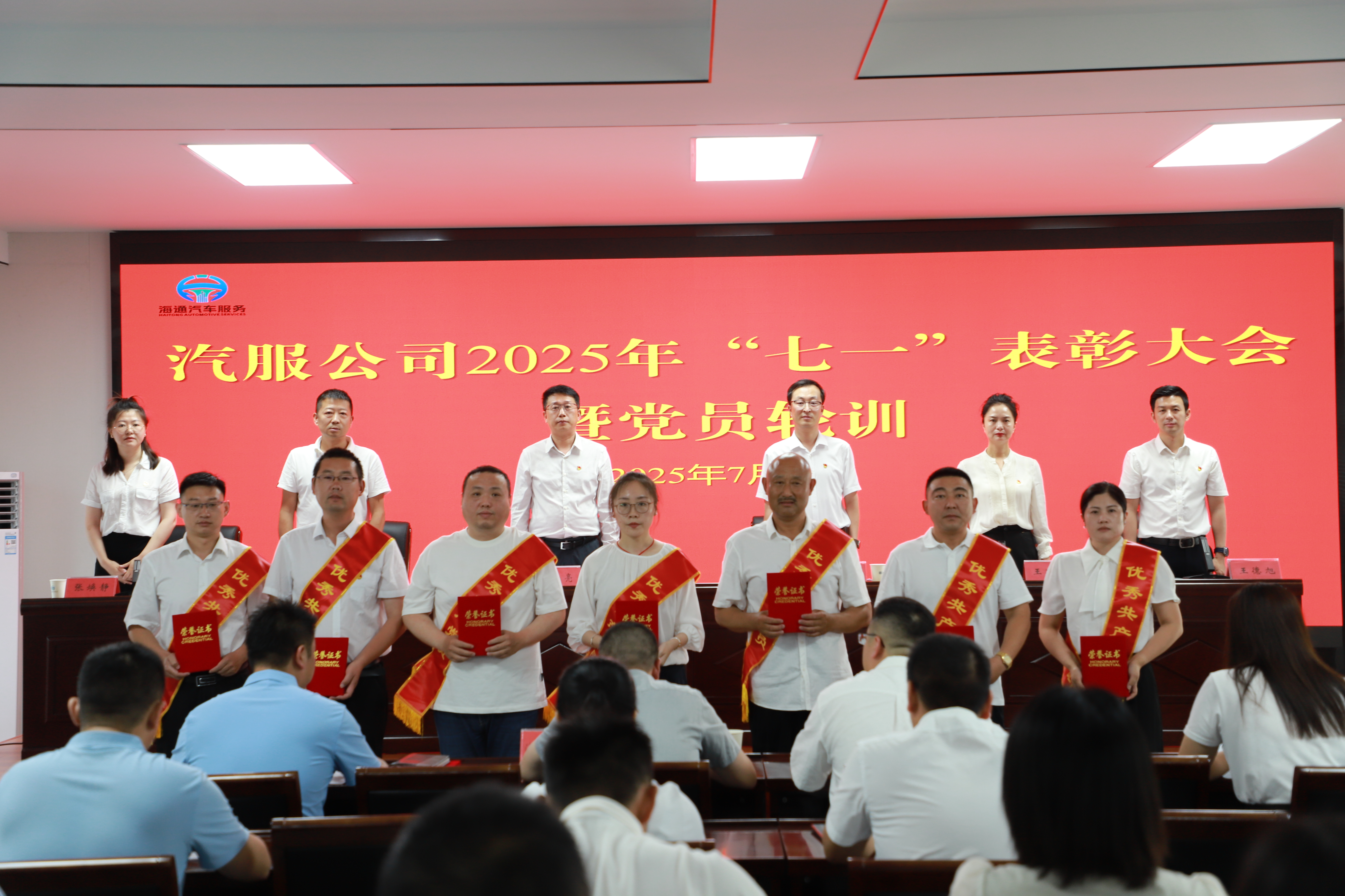 為隆重慶祝中國共產(chǎn)黨成立104周年,充分發(fā)揮各級黨組織領導核心作用、基層黨組織戰(zhàn)斗堡壘作用、廣大黨員先鋒模范作用,7月1日上午,汽服公司召開“七一”表彰大會暨黨員輪訓,表彰一批“雷鋒車”組式黨支部、“與雷鋒車同行”優(yōu)秀共產(chǎn)黨員和優(yōu)秀黨務工作者。公司領導班子,全體黨員,發(fā)展對象,入黨積極分子共80余人參加會議。公司黨委書記、董事長鞠仕亮出席會議,會議由公司黨委副書記、總經(jīng)理唐偉主持。
