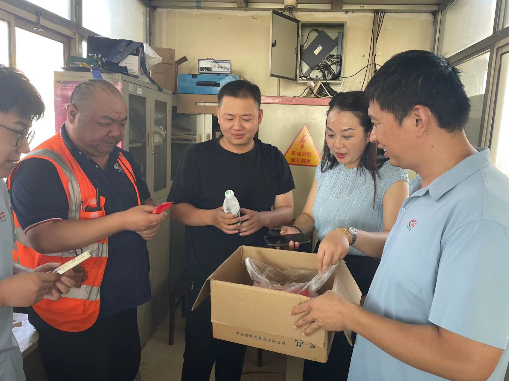 近日,港城驕陽似火,熱浪翻滾,最高氣溫持續(xù)攀升至38℃以上,酷熱難耐,給堅守在一線的員工帶來了嚴峻“烤”驗。為切實做好高溫天氣下一線員工的防暑降溫工作,保障員工的身體健康,7月10日下午,檢測事業(yè)部經理劉海燕親自帶隊,深入一線檢測車間,開展“夏日送清涼”慰問活動,為堅守崗位的員工送去了各類雪糕、防暑降溫飲品等清涼物資。